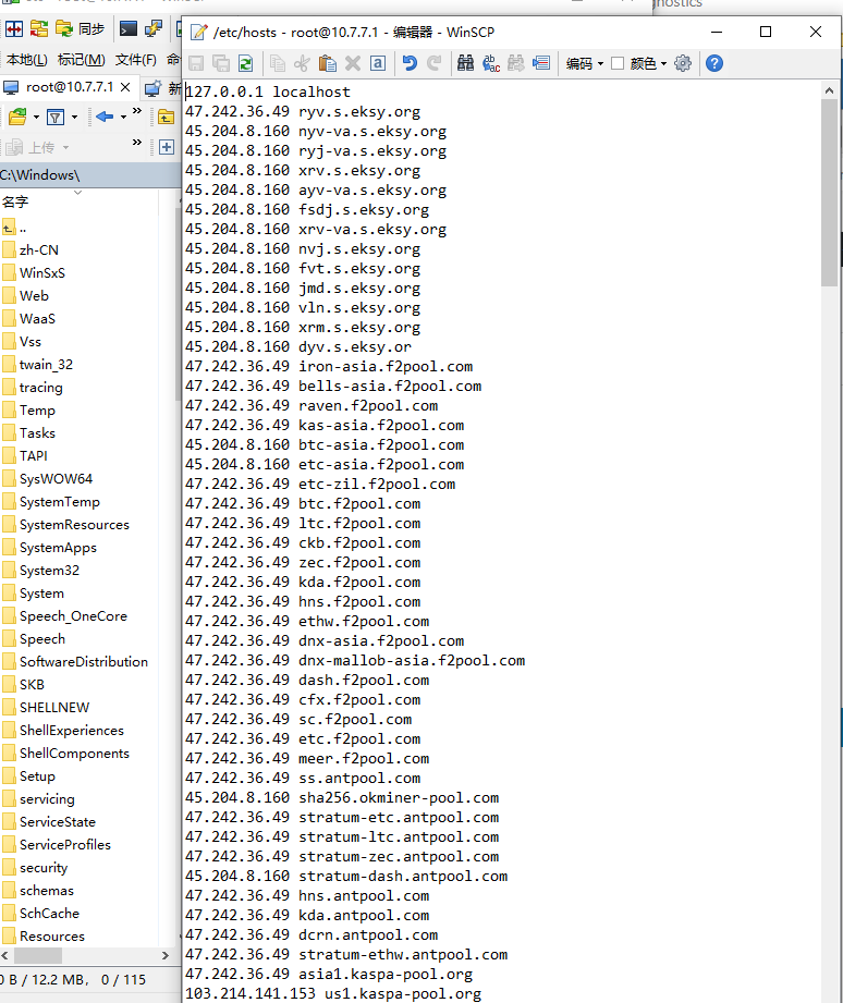 双击打开可以发现以下挖矿地址被指向了抽水地址: